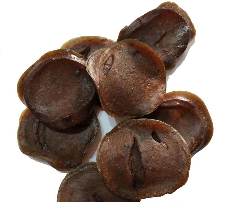 3、滴水:真蟾酥的斷面,滴上水,會(huì )變成白色,而假蟾酥就沒(méi)有這個(gè)變化。